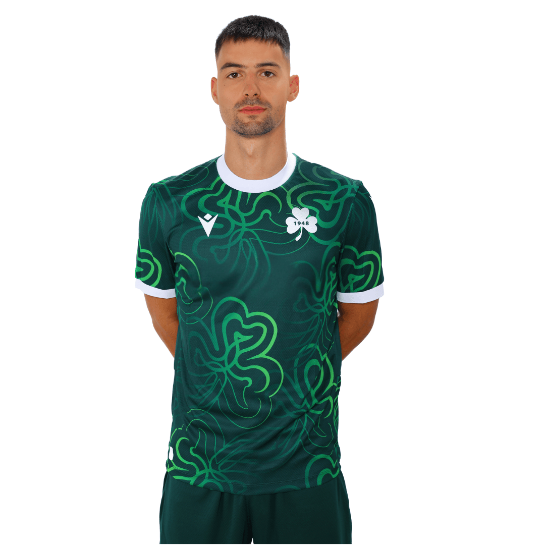 This jersey features a modern, ergonomic fit and the official OMONOIA crest, proudly displayed on the chest. At the back of the collar, the flag of Cyprus is embroidered along with white engravements of “77”, symbolising the celebration of 77 years of OMONOIA. Inside the collar’s side, a printed OMONOIA logo is placed for a unique touch. Along the inside seamlines runs a powerful quote from OMONOIA’s hymn, connecting every fan with the club’s history and passion.