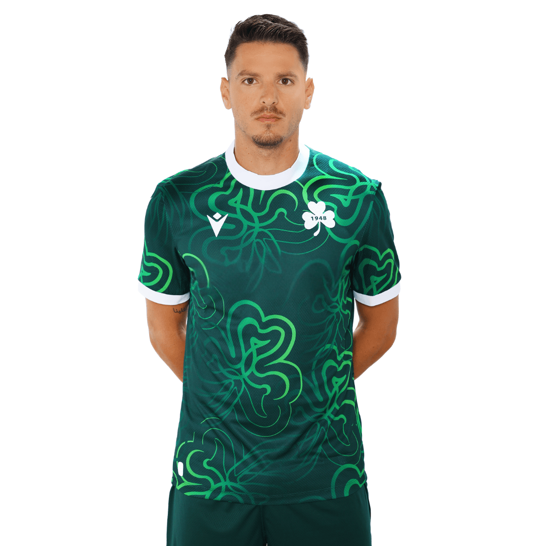 This jersey features a modern, ergonomic fit and the official OMONOIA crest, proudly displayed on the chest. At the back of the collar, the flag of Cyprus is embroidered along with white engravements of “77”, symbolising the celebration of 77 years of OMONOIA. Inside the collar’s side, a printed OMONOIA logo is placed for a unique touch. Along the inside seamlines runs a powerful quote from OMONOIA’s hymn, connecting every fan with the club’s history and passion.