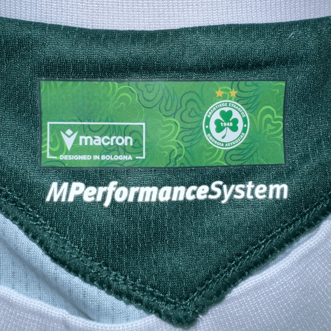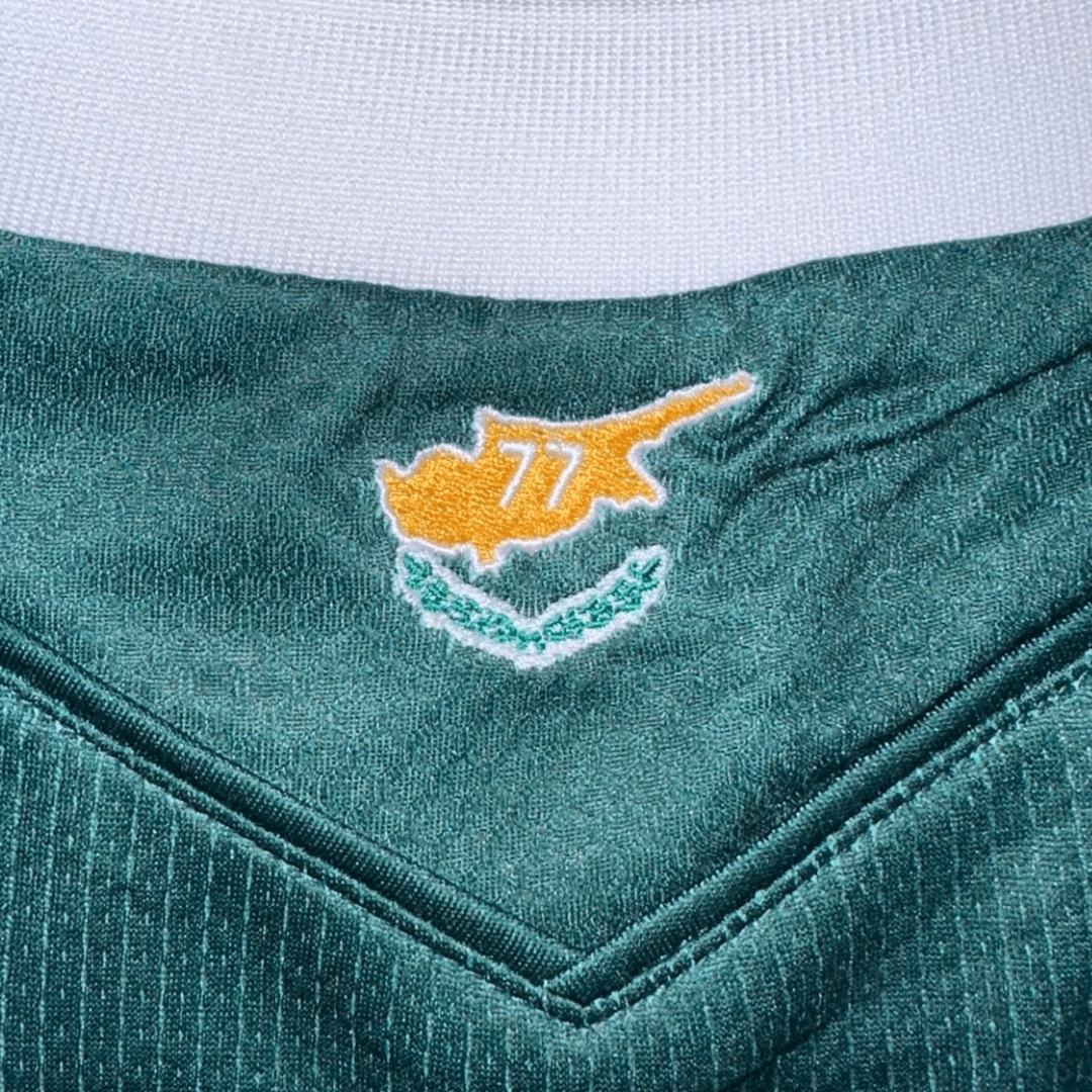 Η φανέλα διαθέτει μοντέρνα, εργονομική εφαρμογή και το επίσημο έμβλημα της ΟΜΟΝΟΙΑΣ στο στήθος. Στο πίσω μέρος του γιακά είναι κεντημένη η σημαία της Κύπρου μαζί με λευκές χαράξεις του αριθμού “77”, σηματοδοτώντας τα 77 χρόνια της ΟΜΟΝΟΙΑΣ. Στο εσωτερικό μέρος του γιακά υπάρχει τυπωμένο το λογότυπο της ΟΜΟΝΟΙΑΣ, ενώ κατά μήκος των εσωτερικών ραφών βρίσκεται μια δυναμική φράση από τον ύμνο μας, που ενώνει κάθε φίλαθλο με την ιστορία και το πάθος του συλλόγου.